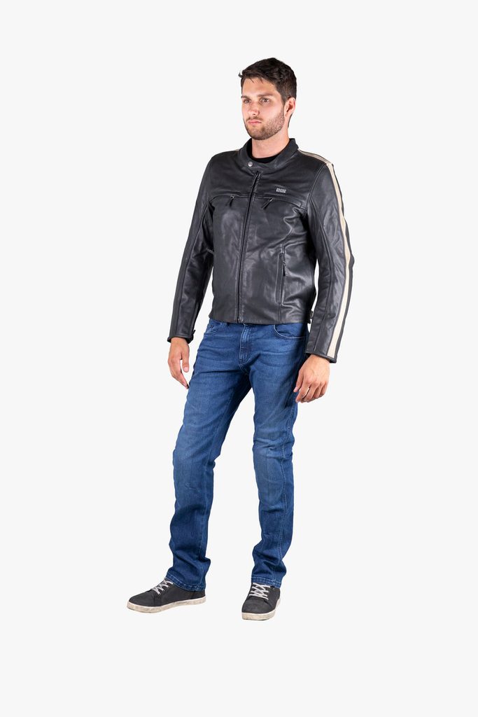 Klasická motocyklová bunda vyrobená z měkké full-grain hovězí usně (nejkvalitnější vrchní část kůže). Tato klasická motorkářská bunda se hodí praktický na jakýkoliv styl jízdy. Díky špičkovým materiálům, ze kterých je vyrobena přináší vysokou úroveň bezpečí a zároveň pohodlí a skvělou ergonomii. Bundu si rádi obléknete na choppera, retro naháče, veterána ale i jakoukoli jinou motorku a po vyndání chráničů i na procházku do města. Bunda se skvěle nosí a přitom nedělá kompromisy v bezpečnosti - je certifikovaná v té nejvyšší úrovni bezpečnosti AAA.